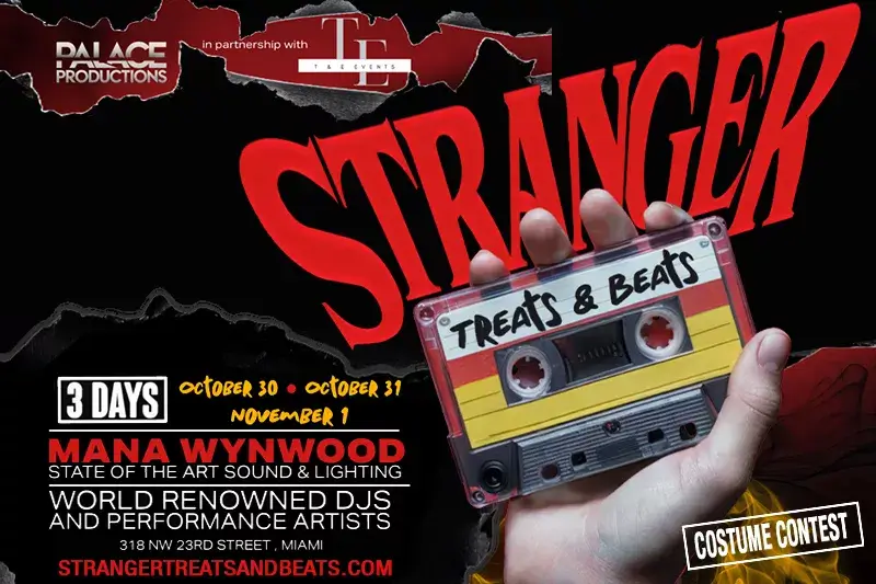 From October 30 through November 1, 2025, Stranger Treats & Beats will transform Mana Wynwood into a Stranger Things–inspired world where music, spectacle, and cinematic production collide. Guests can expect arena-scale staging, 360° projection mapping, towering LED walls, fog effects, and custom-built sets nodding to Hawkins, the Upside Down, and the show’s iconic ‘80s energy—all paired with world-class DJs, dancers, aerialists, and surprise performances.